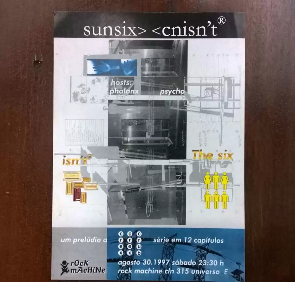 Esse foi um dos motivos para ele ter ficado mais tempo na cidade, ele queria ir em várias festas. Eu cheguei a tocar em uma das festas dessa sequência da dupla como convidado, e esse foi o começo da nossa reaproximação. A gente se respeitava e se gostava muito pra ficar muito tempo distante. Crex Crex era uma codorna, e o Crub veio fechar a sequência de aves raras que eles fizeram. Sai Cnun e entra Isn’t, sai Sunrise 1 e entra The Six. Tem início um época em que compreenderam que, para eles, a cidade não funcionava com lugares fixos.