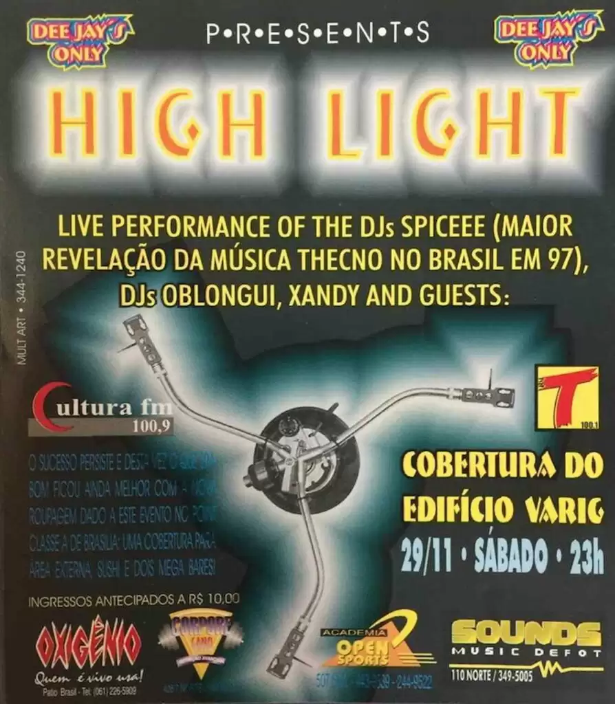Em novembro Spiceee volta novamente a tocar em Brasília. Dessa vez para uma outra festa incrível, em um espaço nunca antes usado para esse tipo de evento, a cobertura do edifício Varig. Fazer uma festa naquele cenário era impensável até então, e isso foi muito marcante. A chegada no evento, a fila na entrada, a subida de elevador para cobertura, tudo era uma sensação nova.