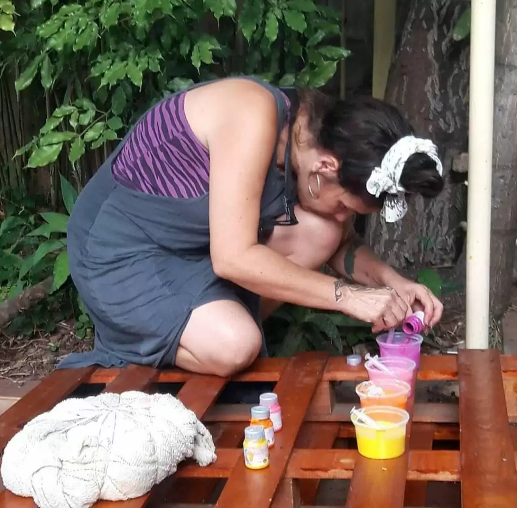 O espaço Ferrugem foi um sonho de ter um negocio familiar, juntando o que cada uma fazia numa casa de mulheres. Foram 15 anos de muitas coisas legais, já teve de tudo, desde show a festa de halloween. Foi uma fase incrível, mas acabou. Estava difícil pra gente, mesmo antes da pandemia estávamos pensando em separar e quando veio a pandemia firmou a ideia. Mas a mudança foi pra melhor, com certeza. Mudei do Guará para a Asa Sul, estou tocando sozinha o ateliê, minhas irmãs estão cada uma fazendo suas coisas também. E de 15 em 15 dias nos encontramos, fazemos nossas feirinhas na 113 sul e trabalhamos juntas, Isabela cortar cabelo e Rafa vende sucos, tem uma empresa de sucos. Todo mundo empreendendo e ainda temos um gostinho do Espaço Ferrugem e o encerramento desse ciclo foi bonito também. Vai deixar saudade, mas nesta nova fase estou aprendendo muito e curtindo a nova fase e novo endereço.